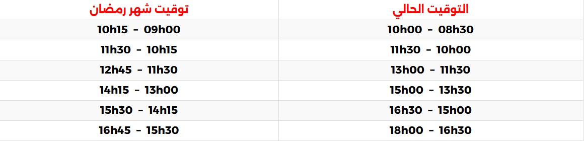 ينهي عميد كلية اللغات و الآداب و الفنون بالقنيطرة إلى علم كافة الطلبة المسجلين بالكلية، أن توقيت الدراسة خلال شهر رمضان المبارك سيكون على النحو التالي :